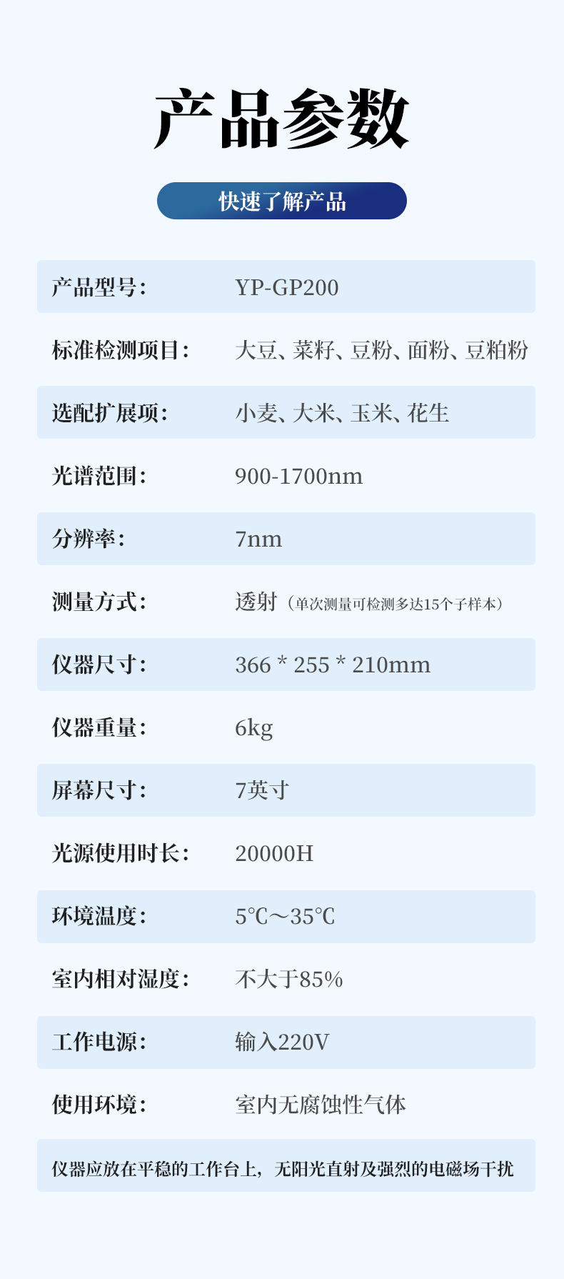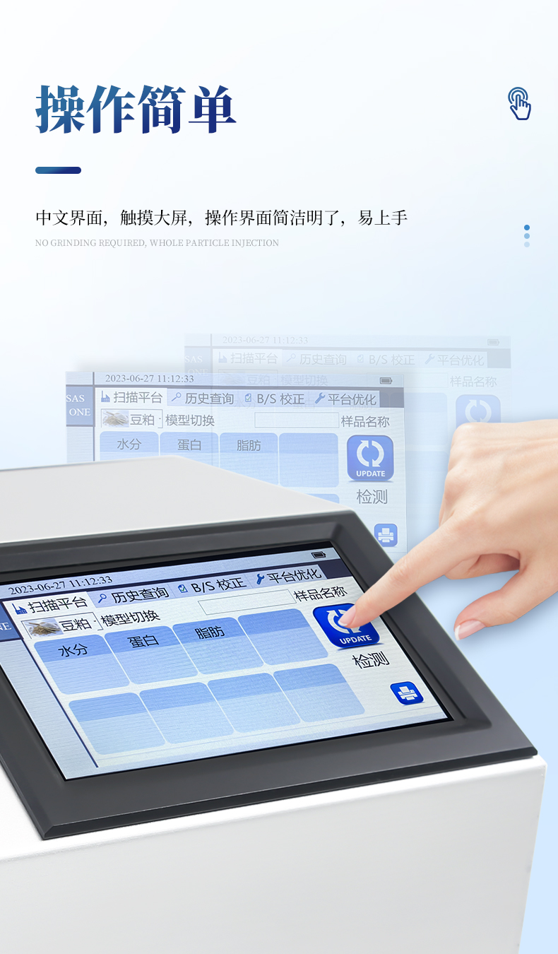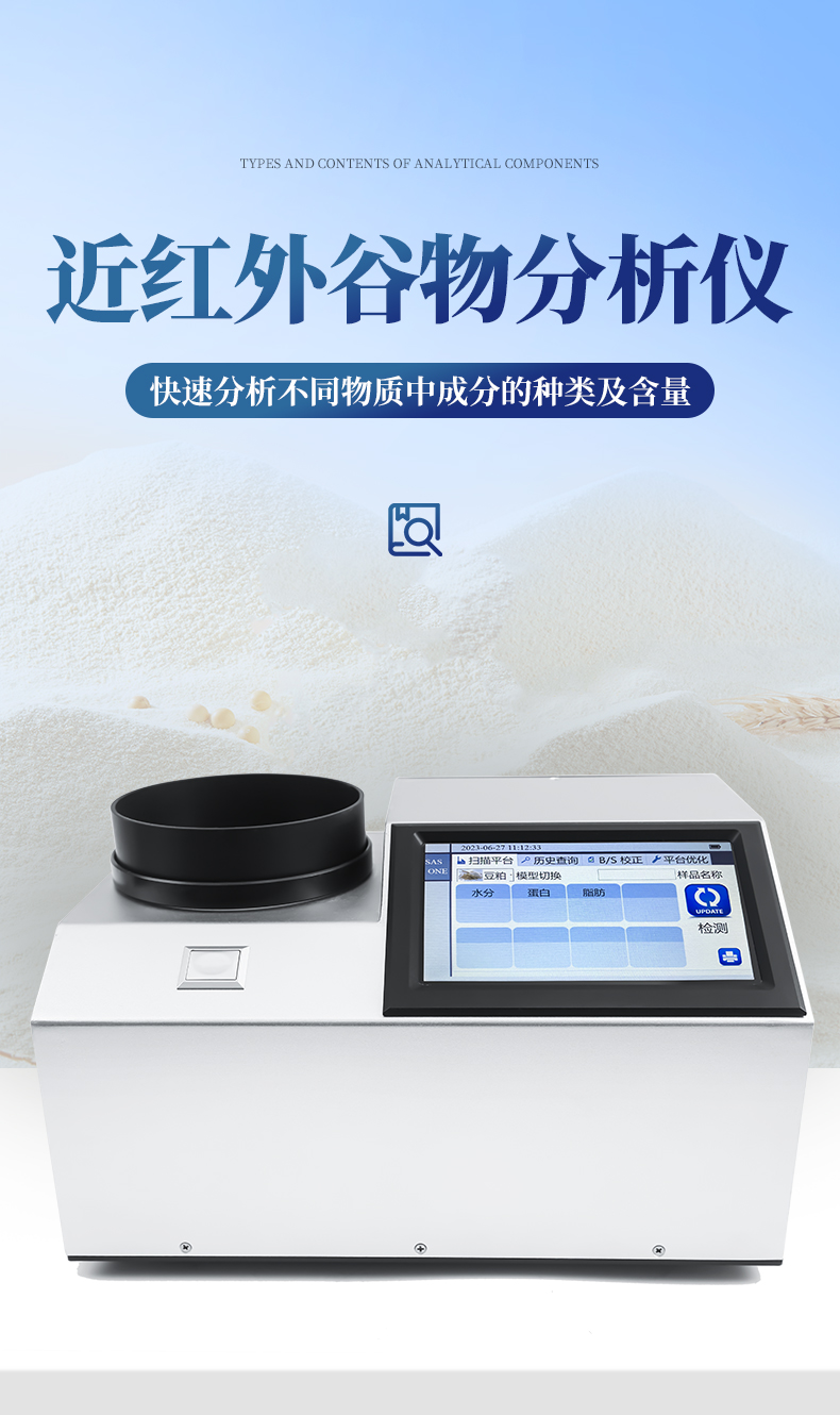 本儀器YP-GP200為近紅外光譜分析儀,可以根據(jù)近紅外光線(xiàn)照射樣品產(chǎn)生的光譜,快速分析不同物質(zhì)中成分的種類(lèi)(如蛋白、水分、油脂、纖維、灰分等)及含量,并可根據(jù)客戶(hù)需求添加模型。